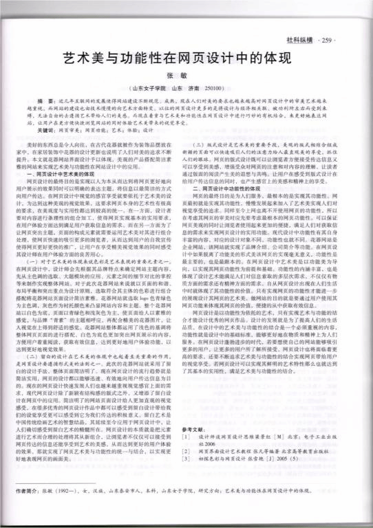 2016.04 张敏 艺术美与功能性在网页设计中的体现 中学生导报·教学研究