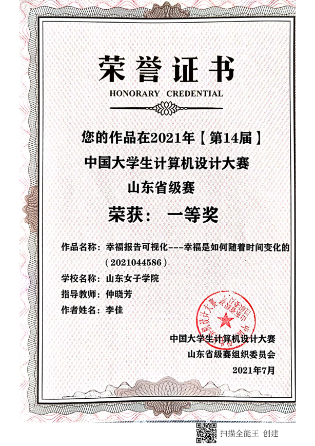 2021.07 李佳 中国大学生计算机设计大赛 省级一等奖