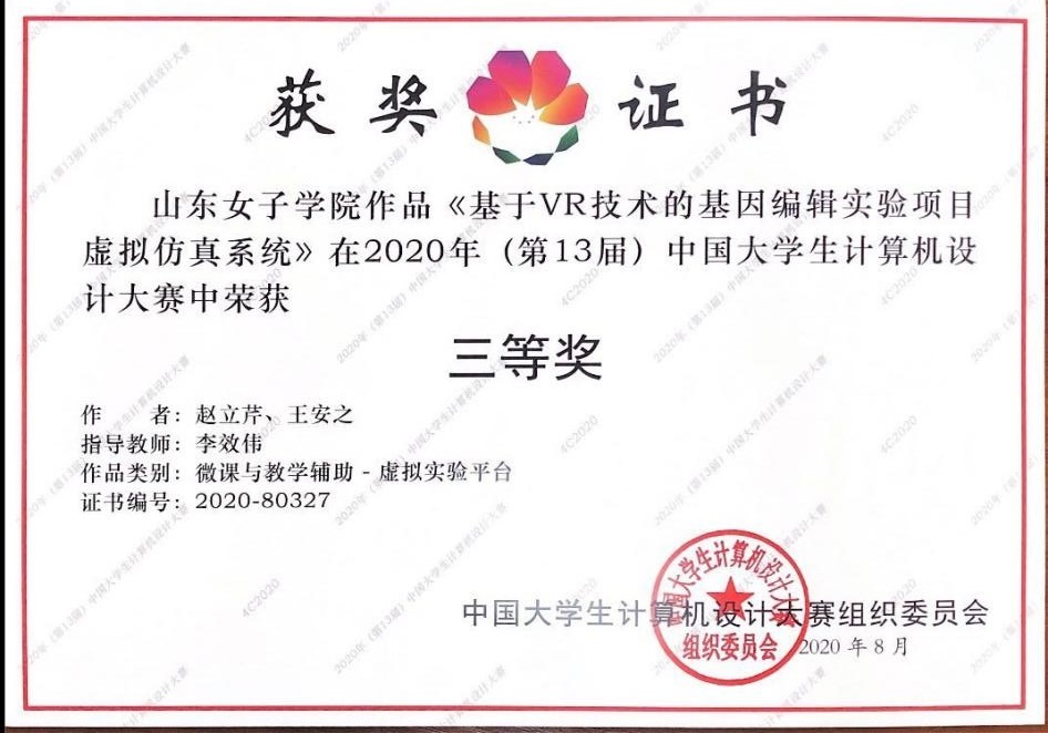 2020.08 赵立芹 中国大学生计算机设计大赛 国家三等奖