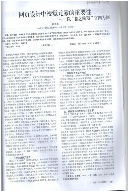 2016.03 杨梦露 网页设计中视觉元素的重要性-以“拙艺陶器”官网为例 人间