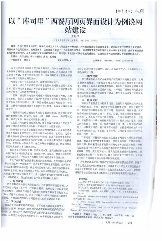 2016.03 王丹凤 以“库司里”西餐厅网页界面设计为例谈网站建设 人间