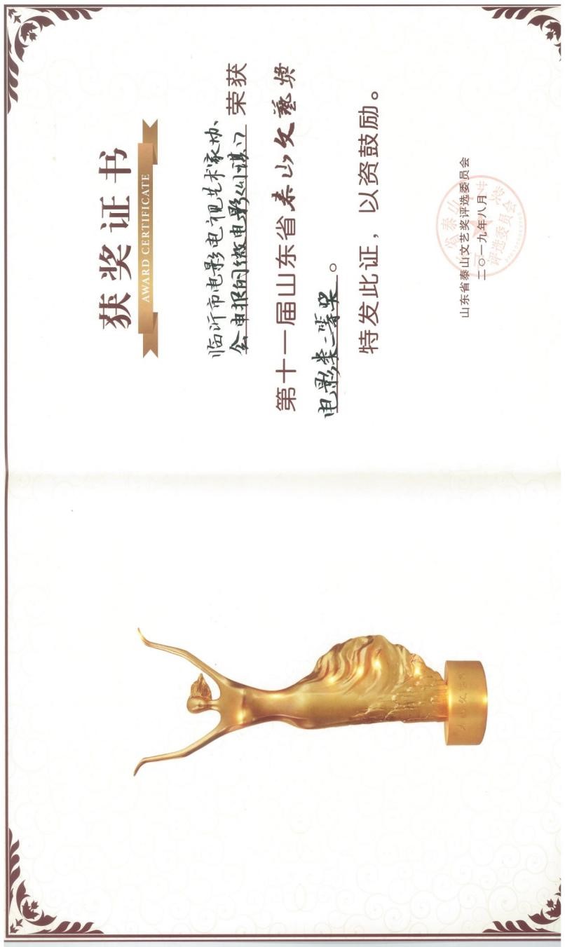 2019.08 林立坤 第十一届泰山文艺奖电影类 省级二等奖