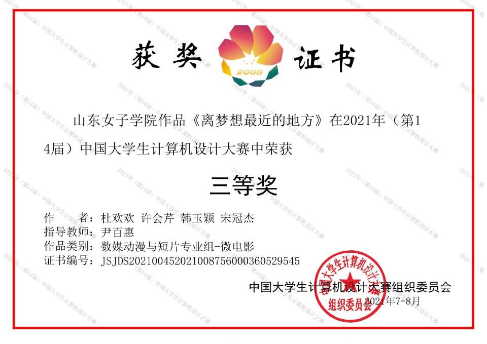 2021.08 杜欢欢 中国大学生计算机设计大赛 国家三等奖