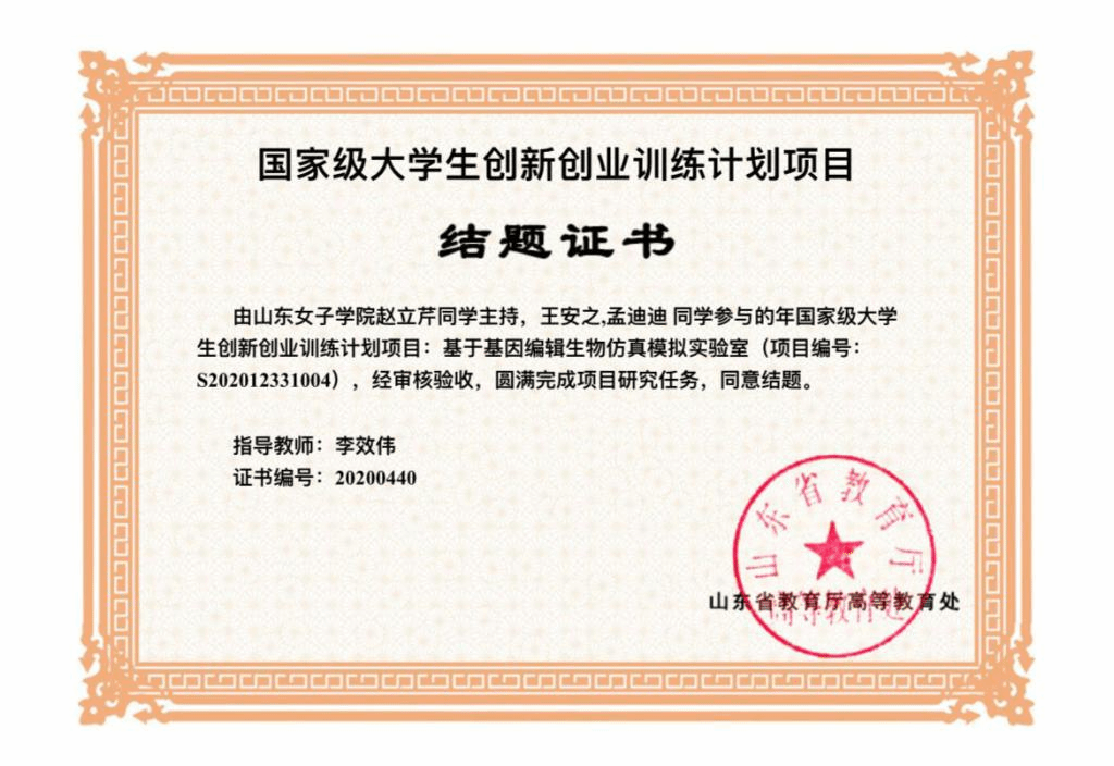 2020.12 赵立芹 基于基因编辑生物仿真模拟实验室 创新训练项目 国家级
