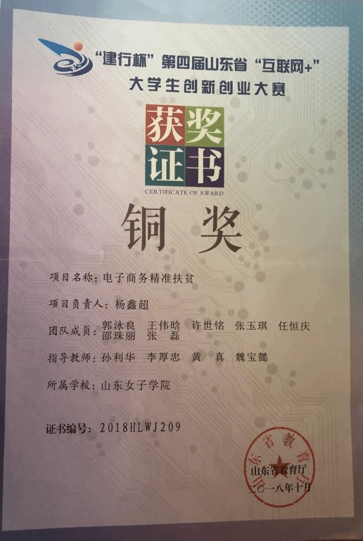 2018.08 杨鑫超 电商精准扶贫 “互联网+”全国大学生创新创业大赛 省级三等奖