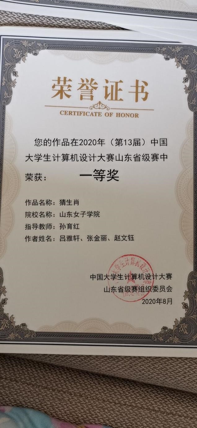 2020.08 吕雅轩 中国大学生计算机设计大赛 省级一等奖