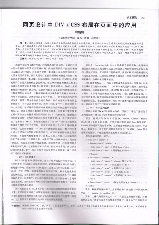 2016.04 韩晓璐 网页设计中Div+CSS布局在页面中的应用 中学生导报·教学研究
