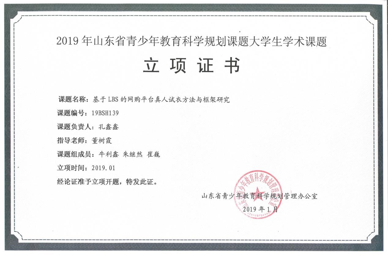 2019.01 孔鑫鑫 基于LBS的网络平台真人试衣方法与框架研究 青少年教育科学规划课题大学生学术课题 省级