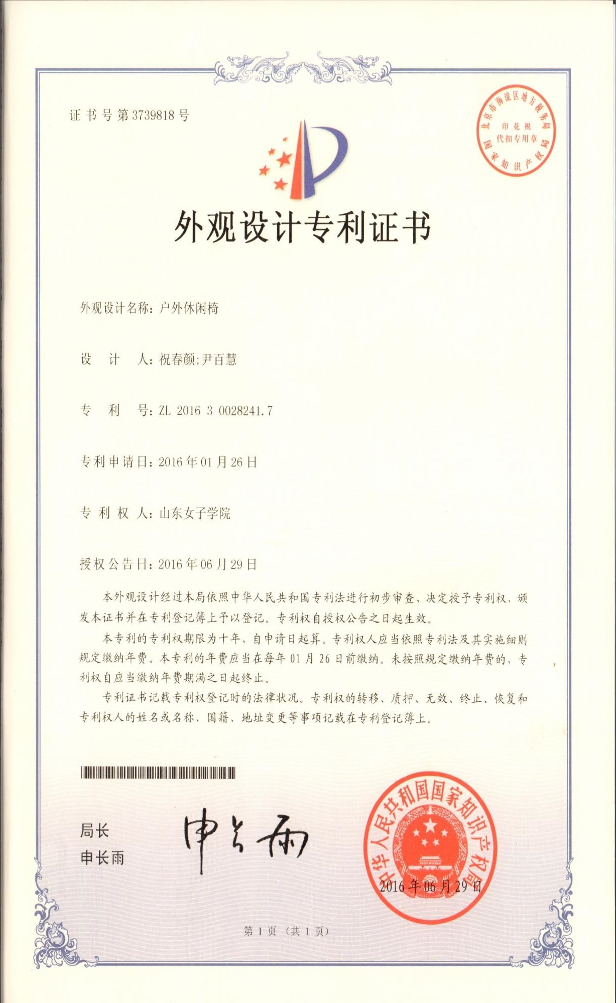 2016.06 祝春颜 户外休闲椅 外观设计专利