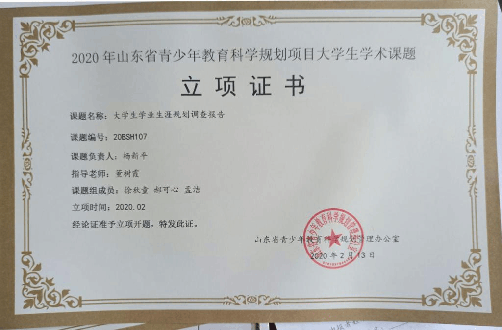 2020.02 杨新平 大学生学业生涯规划调查报告 山东省青少年教育科学规划课题大学生学术课题 省级