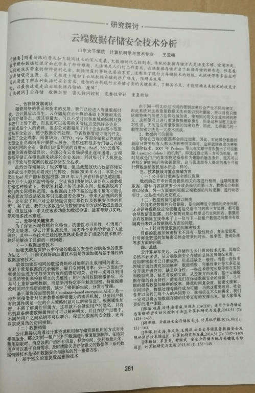 2016.04 王亚楠 云端数据存储安全技术分析 教师