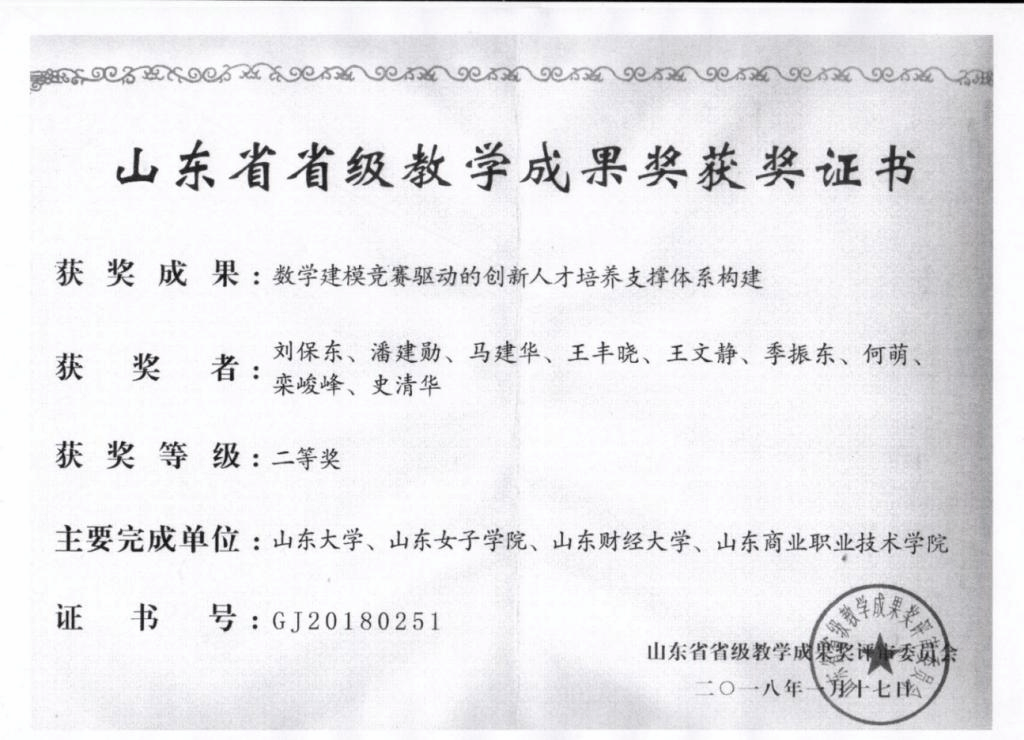 2、省级教学成果奖:数学建模竞赛驱动的创新人才培养支撑体系构建