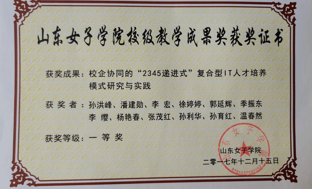 4、校级教学成果奖:校企协同的“二三四五递进式”复合型IT人才培养模式研究与实践